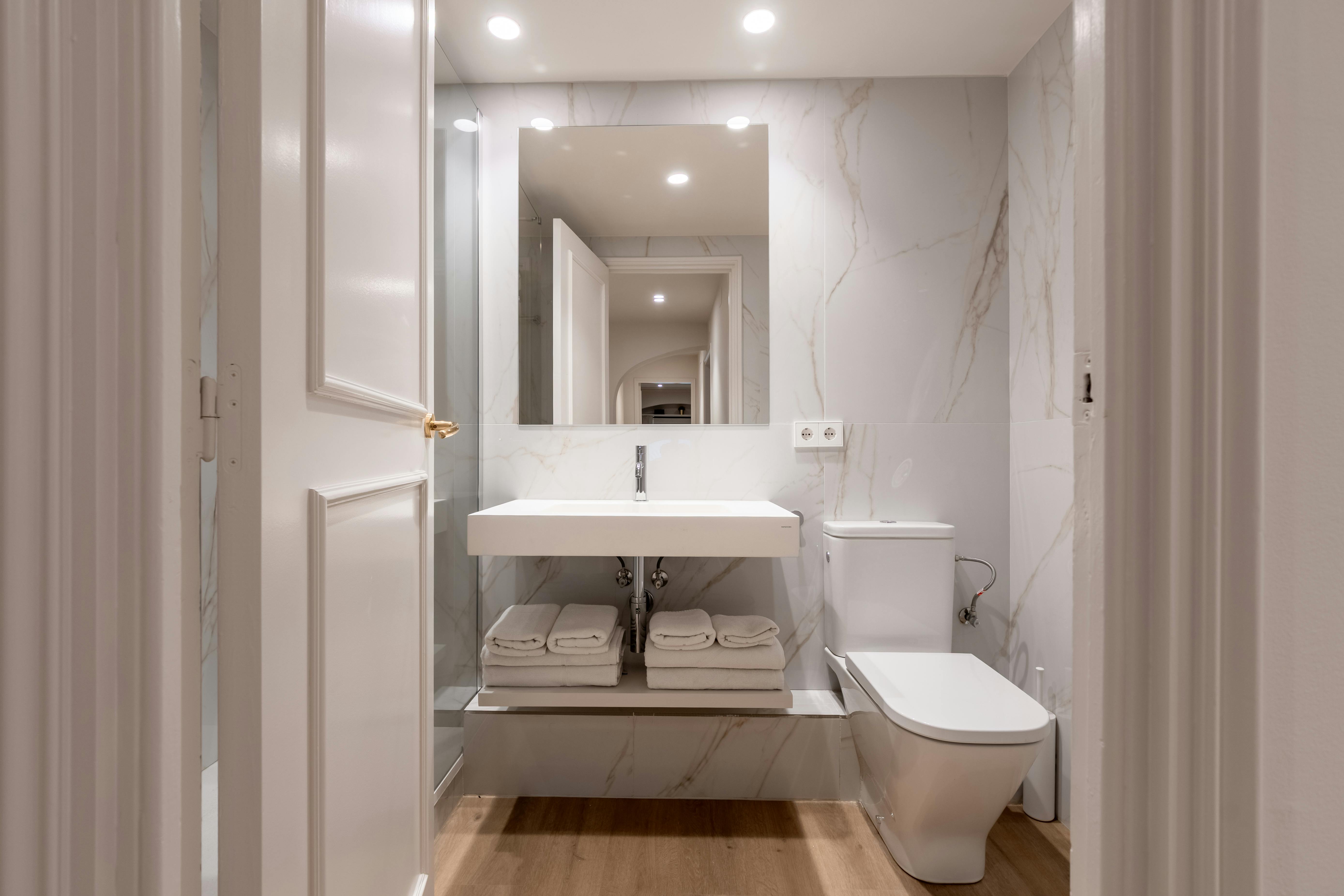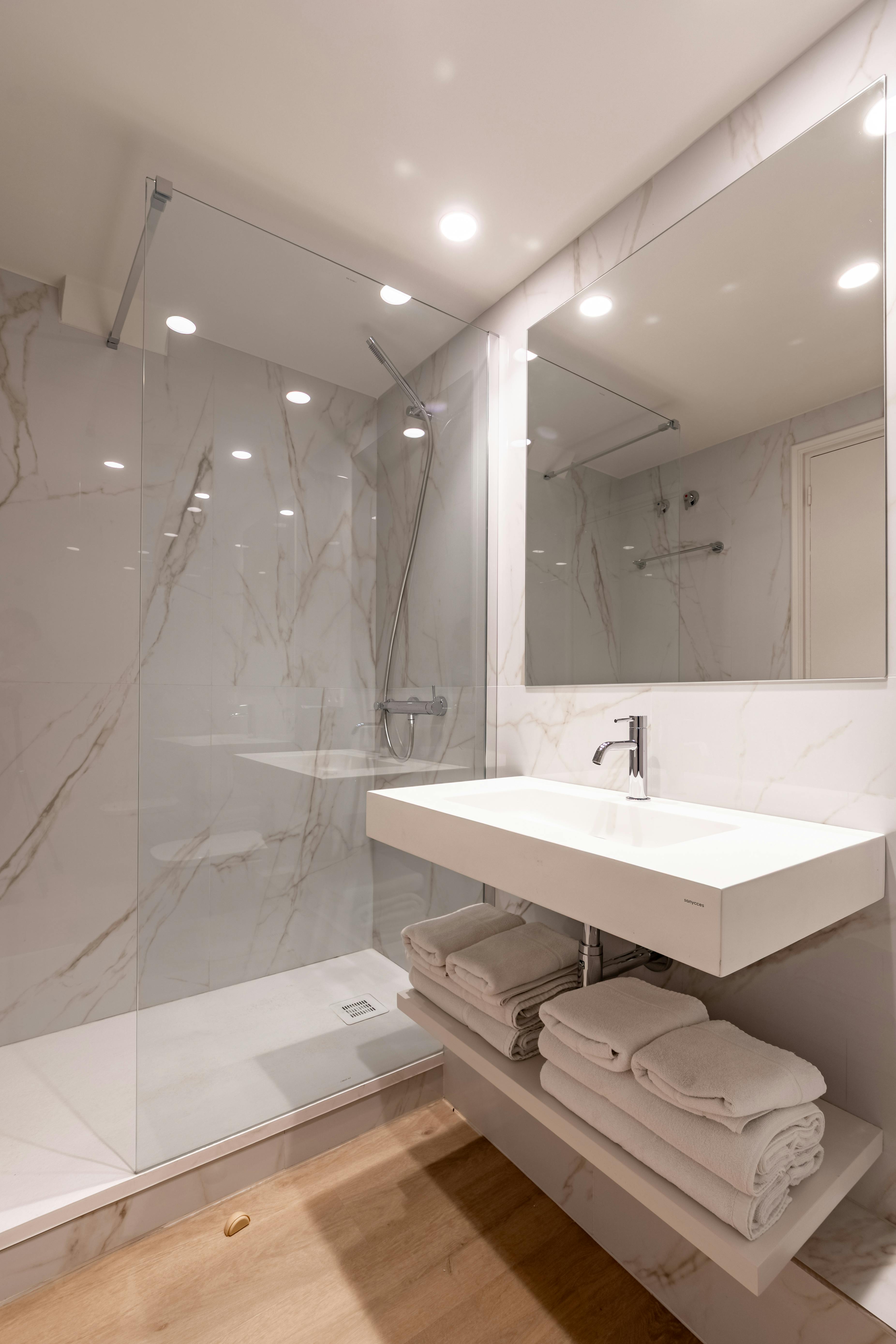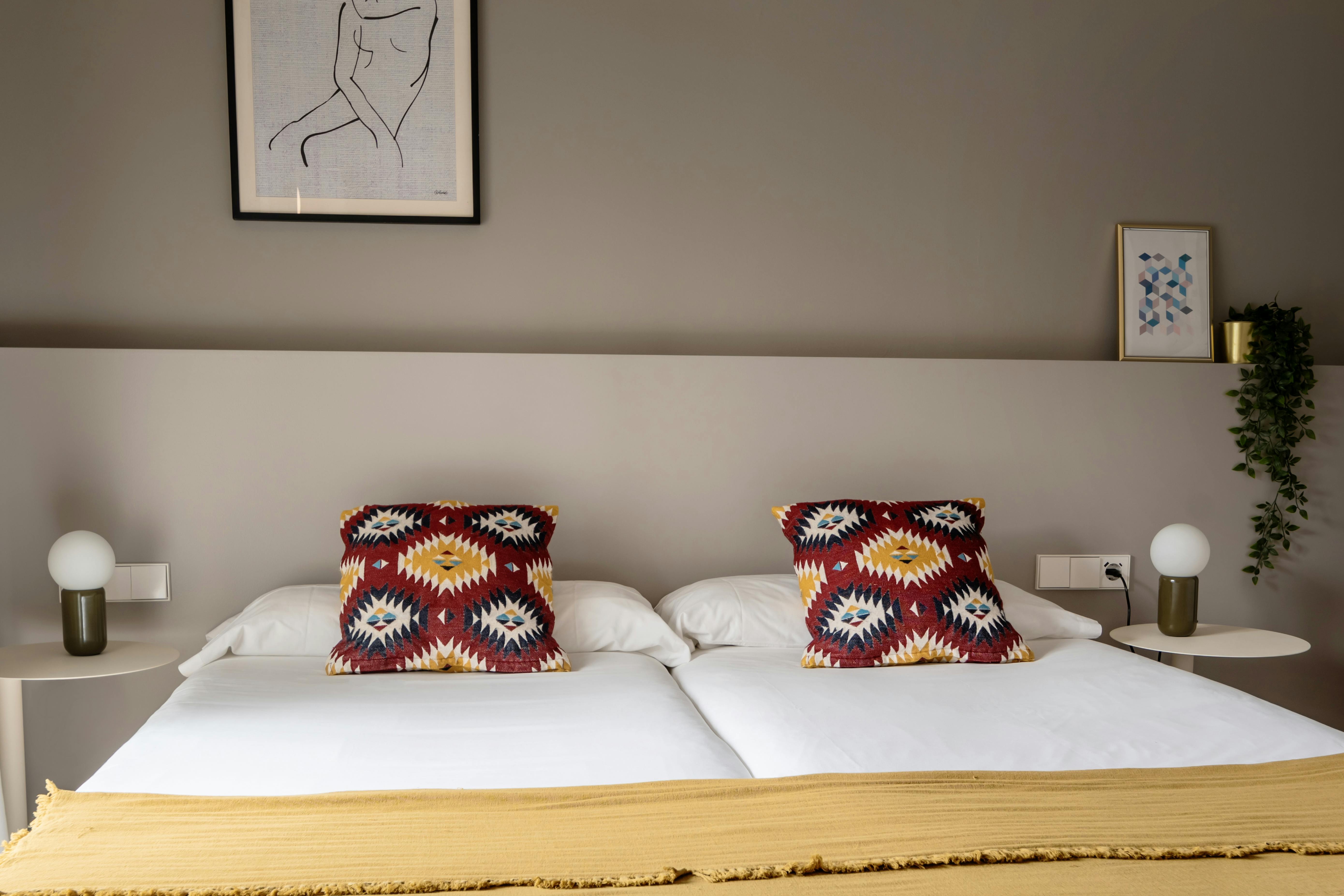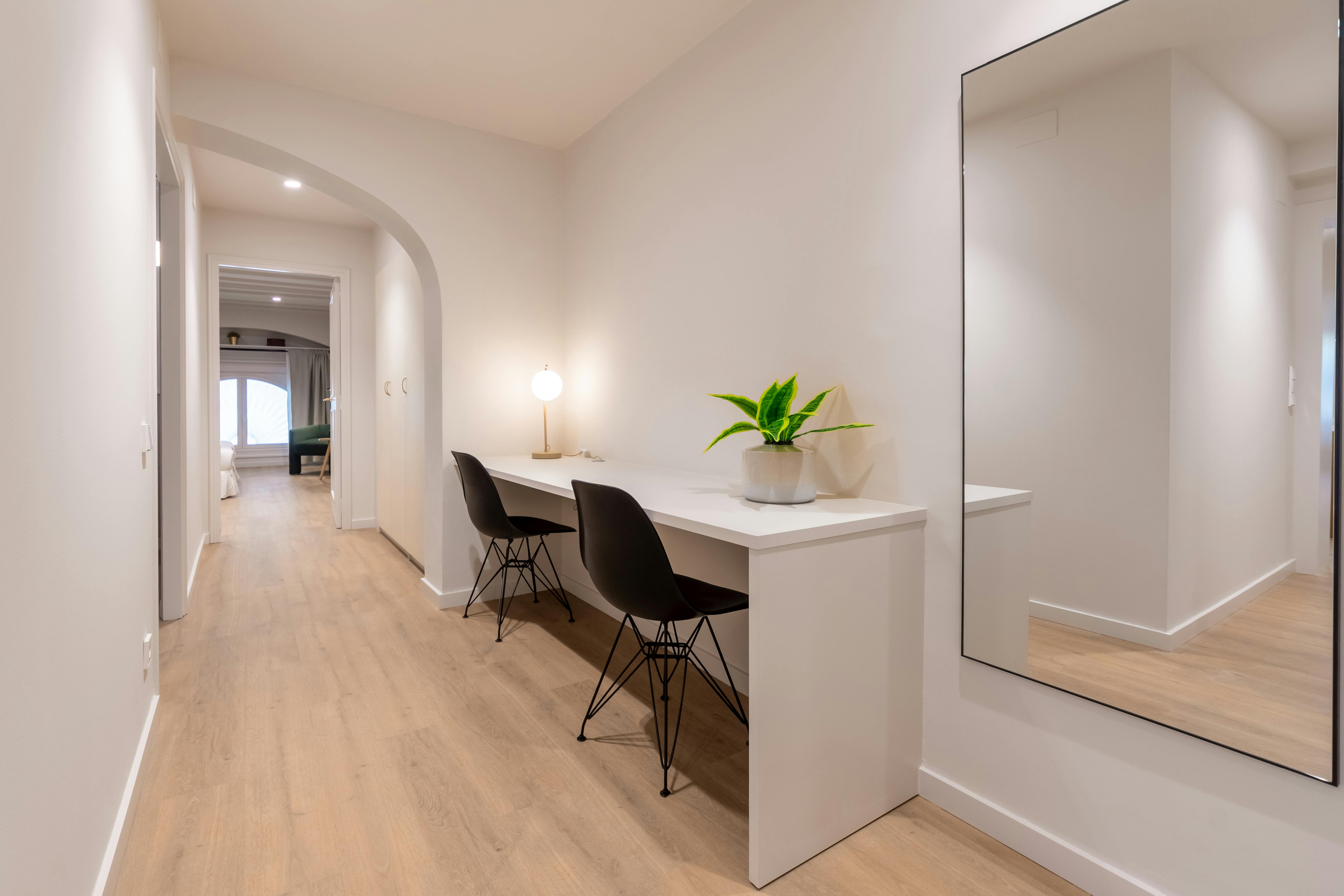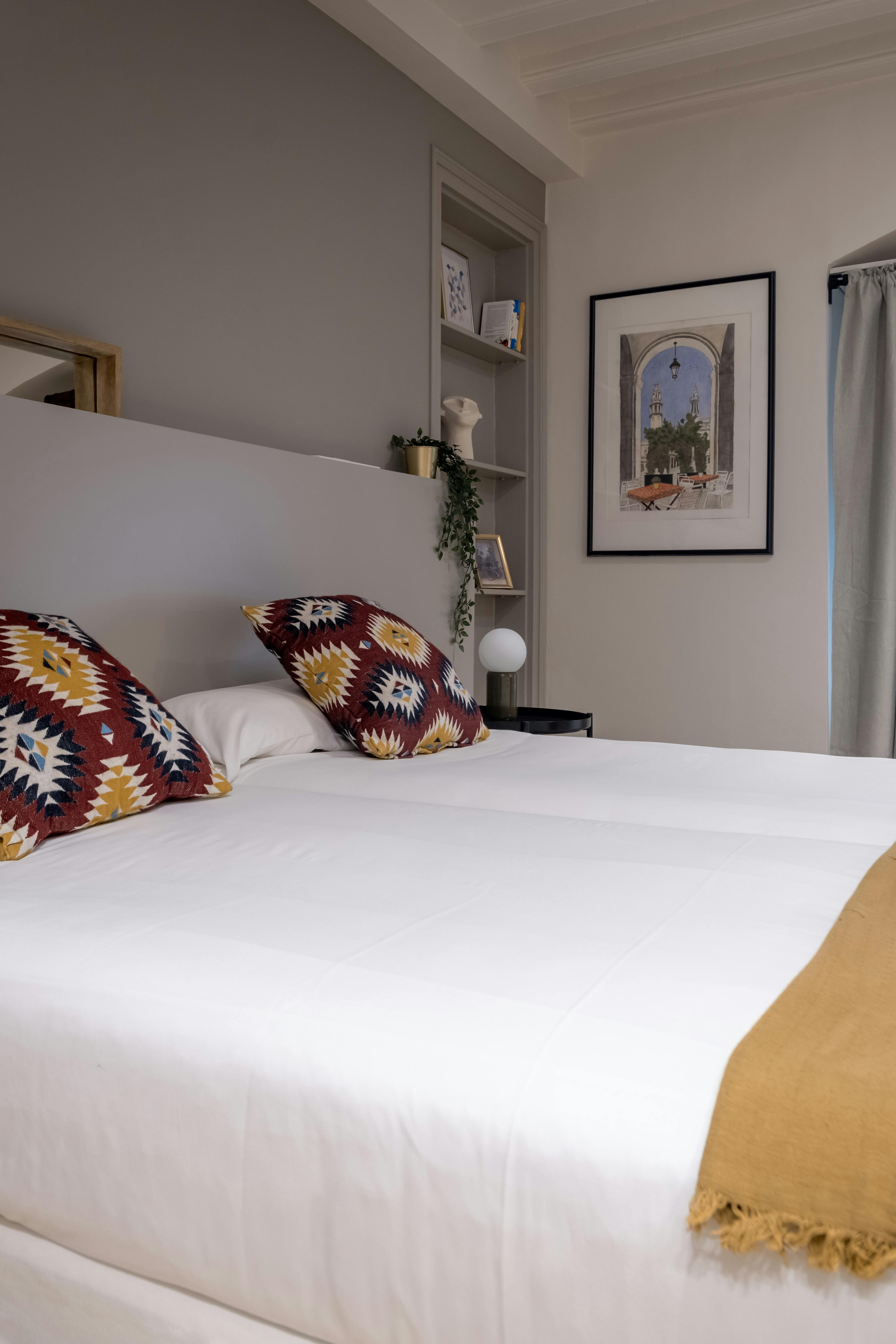 This apartment has three bedrooms: one exterior double room with views of the harbor; a second double room facing Passeig d’Isabel II, offering privileged views of the city's historic buildings; and an interior bedroom with two single beds.
